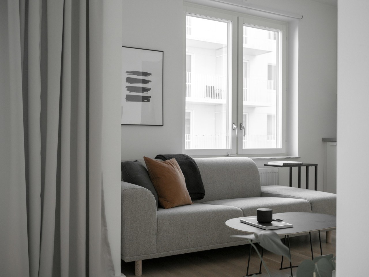 Тяжелые портьеры или сложные драпировки «съедают» пространство. Лучше выбрать легкие, полупрозрачные шторы, максимально близкие по цвету к стенам. Они не перетягивают внимание и вписываются в любой стиль — от сканди до минимализма.