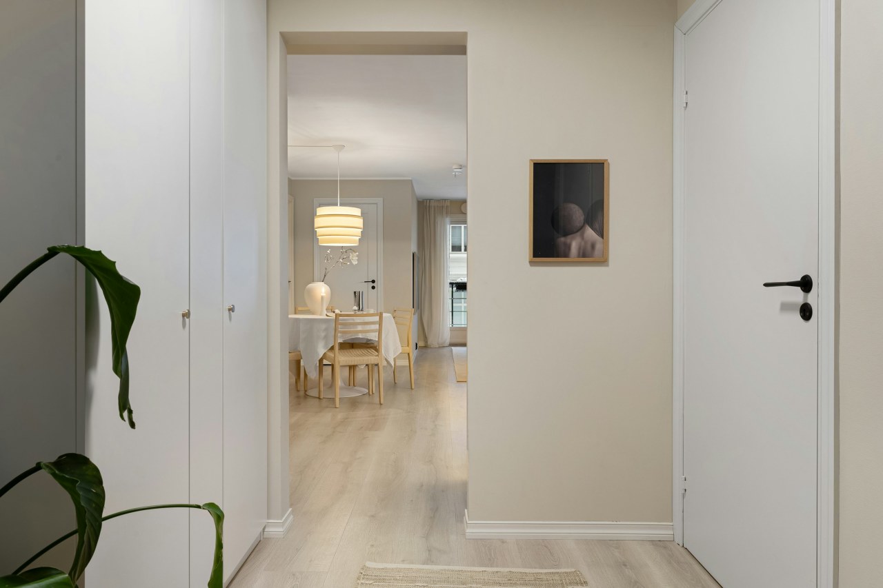 - Узкие коридоры можно сделать шире, покрасив боковые стены в более светлый, чем торцевые, оттенок.