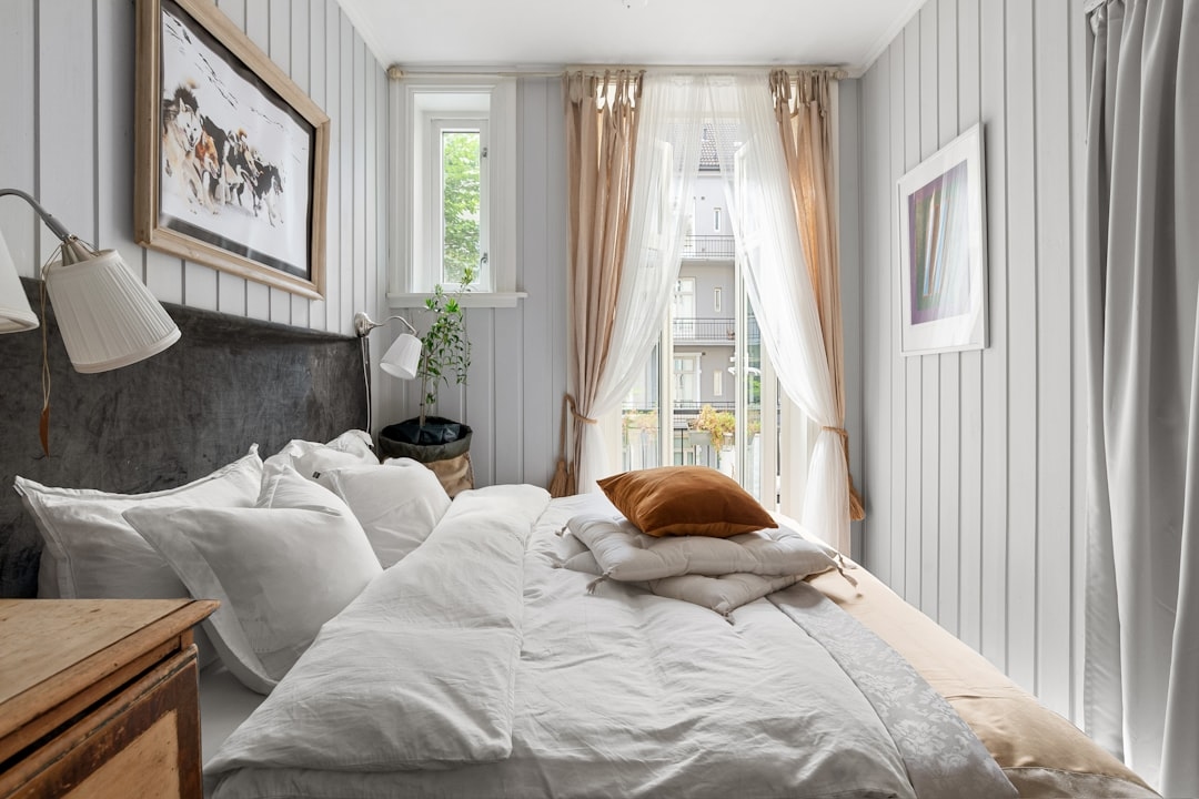 У спальні найкраще працюють заспокійливі, нейтральні або м’які кольори. Необов’язково зводити все до сірого чи бежевого – але відтінки мають налаштовувати на відпочинок: оливковий, приглушено-блакитний, теплий теракотовий. Спробуйте уявити себе під вечір, коли хочеться відпочити – чи не дратуватимуть вас кислотний жовтий або насичений червоний?